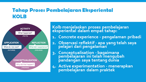 Ada banyak model pembelajaran namun siklus belajar Kolb sesuai dengan konteks sosial Kerangka Kerja (Experiential Learning: Experience as the Source of Learning and Development. Englewood Cliffs, New Jersey: Prentice Hall, 1984).
