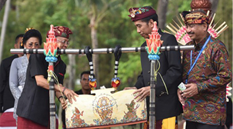 Turut hadir dalam acara ini Ibu Negara Iriana Joko Widodo, Menko Kemaritiman Luhut B. Pandjaitan, Seskab Pramono Anung, Mensesneg Pratikno, Menpar Arief Yahya, Menteri PUPR Basuki Hadimuljono, dan Gubernur Bali I Wayan Koster. (EN/JAY/ES)
