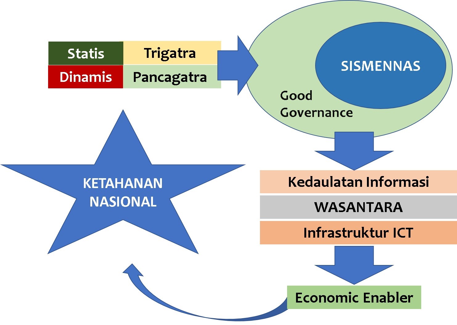 Manajemen Kepemimpinan Nasional yang berbasis Simmennas yang mengacu pada Good Governance akan mengubah Gatra Statis dan Gatra Dinamis (Astagatra), menjadi kekuatan Pembangunan Nasional untuk mewujudkan Cita-cita Nasional dan meningkatkan Ketahanan Nasional.